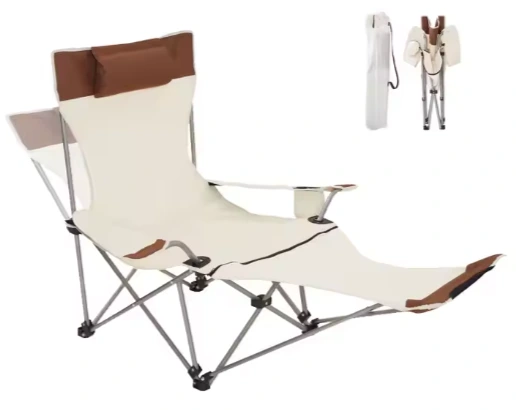 Sakado Folding Beach Prezidan Deyò Lounger Portable Folding ki chita sou plaj kan deyò chèz plisman ak footrest ak sak depo