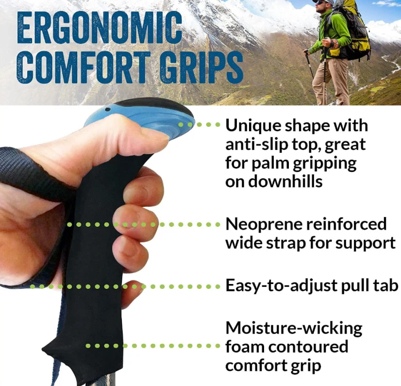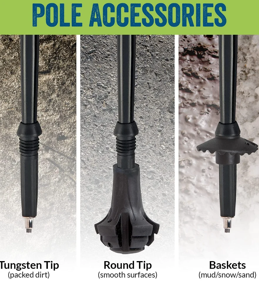 Double manch plisman randone poto, lè nan reglabl 2-moso plisman randone / mache / randone poto ki tonbe nan jis 13.5 pous ak peze mwens pase 11 ons chak. Kado a pafè pou lover nan vwayaj. Chwazi poto yo ki anfòm wotè ou ak chwa ou nan pwaye.