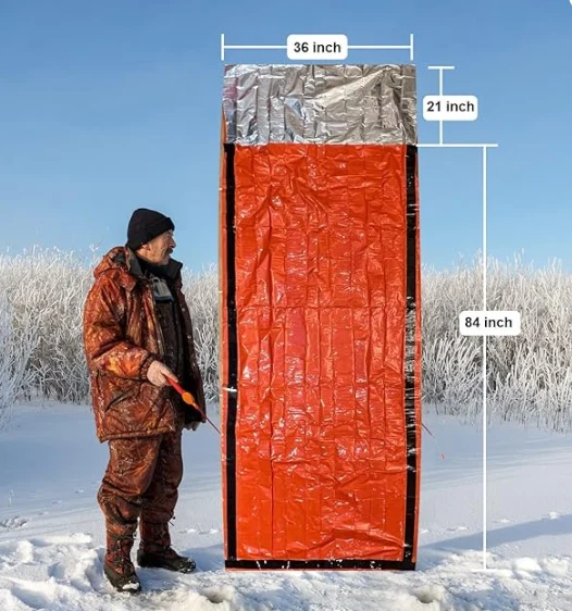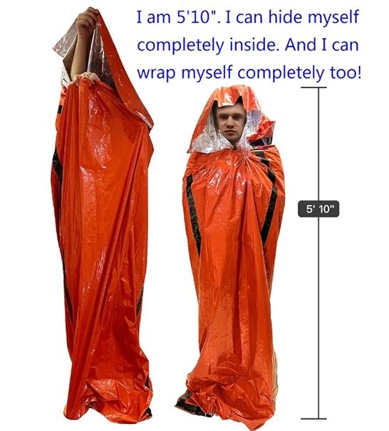 Sak pou dòmi ijans ka ogmante chans ou pou siviv nan tout move tan, tout sezon ak tout sikonstans. Li se te fè nan dirab posibilite materyèl mylar ki fèt nan NASA pou eksplorasyon espas. Li konsève / reflete tounen 90% nan chalè kò. Li se ki kapab itilize ankò, ki enpèmeyab ak windproof.