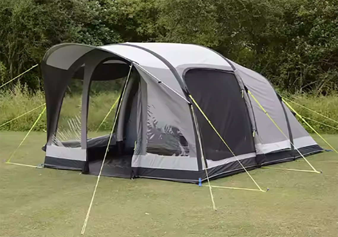 K ap viv chanm kat sezon tant, 4 sezon fanmi pòtab liksye blan RV tinèl enflatab deyò kan tant tant.